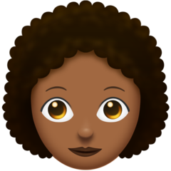 | Emoji | 👩🏾🦱 |