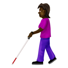 | Emoji | 👩🏿🦯 |